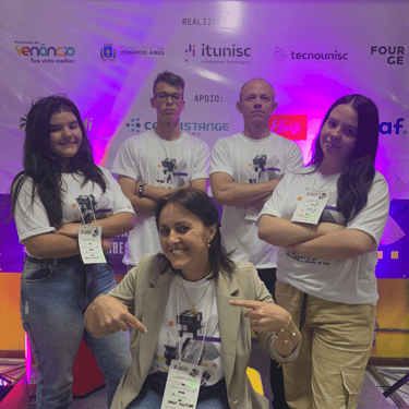 Após um fim de semana de intenso trabalho colaborativo, apresentamos nosso pitch à banca avaliadora. Entre muitas ideias criativas, conquistamos o 3º lugar geral, recebendo como prêmio três meses de incubação na Incubadora da UNISC, com acompanhamento técnico para continuar desenvolvendo a solução. Além disso, todos os projetos participantes foram convidados a integrar a trilha de validação da Incubadora Tecnológica de Venâncio Aires, com oficinas e mentorias para estruturar melhor as ideias apresentadas.